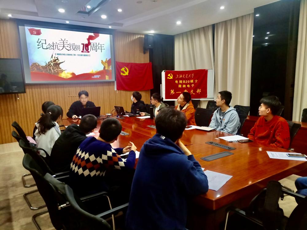 今年是中国人民志愿军抗美援朝出国作战70周年,为深入宣传抗美援朝战争的伟大胜利,继承和弘扬伟大的抗美援朝精神,增强党组织的凝聚力和战斗力,11月13日晚,新盛娱乐 B20硕士微纳电子第一党支部开展了 “纪念中国人民志愿军抗美援朝出国作战70周年”主题党日活动。活动由党支部书记张清泽主持。