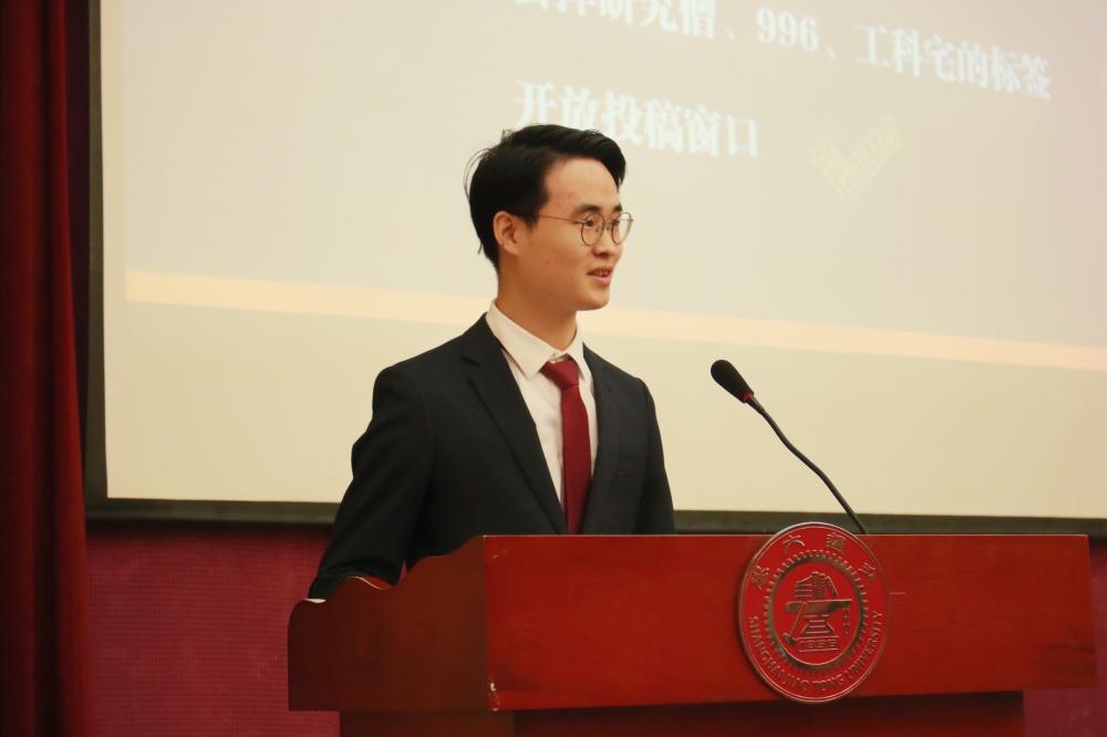 高宇岑代表校学联致辞。他表示新盛娱乐 学子群英荟萃,在学科竞赛、创新创业等领域中均取得优异成绩,希望能通过学代会让各位代表共同参与校园文化建设,为学校、学院的发展壮大不懈努力。
