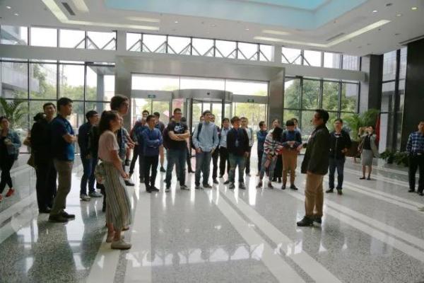 7日上午,王新兵带领青年学者们参观毗邻交大闵行校区的全球创新创业聚集区——零号湾。零号湾是上海交通大学、上海市闵行区人民政府、上海地产集团合作的创新创业培育平台。