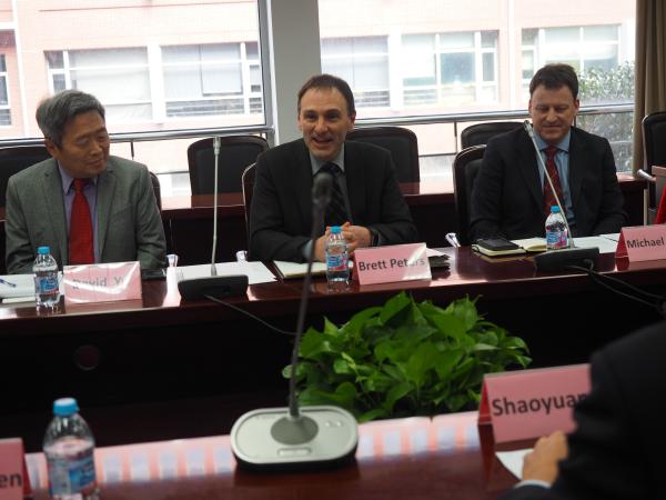 签约仪式前,杨博介绍了学院发展概况。Brett Peters表示,感谢上海交大在合作过程中的大力支持,威大也将继续开放资源,为学生的交流学习提供良好的平台,并期望在与上海交大在合作中共同进步。