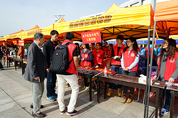 校庆大会结束,校友们在志愿者的引导下有秩序登车并前往餐饮大楼用餐。下午,志愿者们引导校友们参加院系的座谈会、联谊会,出席奖学金颁奖仪式,或参观校园、实验室。“学弟学妹们也都在做志愿者了”,一位在校期间曾经积极参加志愿服务活动的校友难掩欣喜地说道。