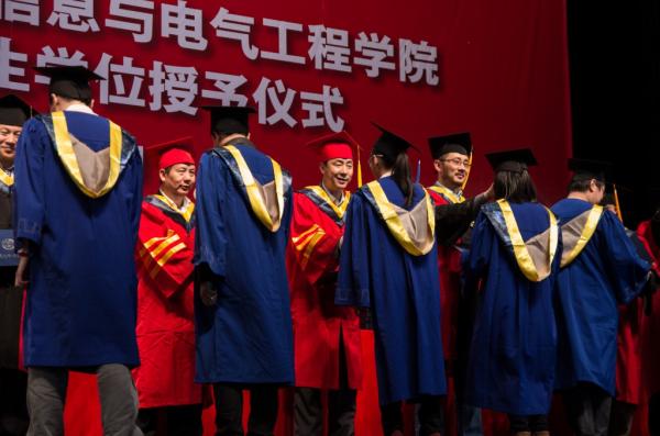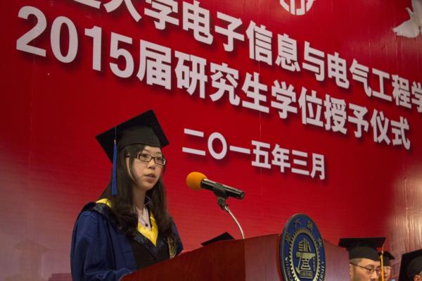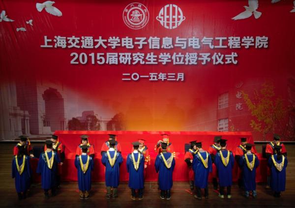 “百年交大,巍巍学府,猛龙白虎,人才辈出,临别之际,各抒鸿志,一壶酒引,南洋园不问英雄出处。”3月20日下午,上海交通大学电子信息与电气工程学院2015届研究生学位授予仪式在闵行校区菁菁堂举行。