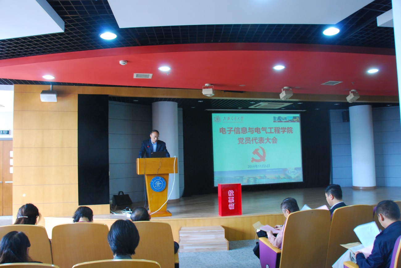 2014年11月5日,电子信息与电气工程学院在电信群楼3-200号召开党员代表大会,选举出席中共上海交通大学第十次代表大会代表。院党委书记苏跃增主持会议,大会应出席代表80人,请假5人,实际到会代表75人。