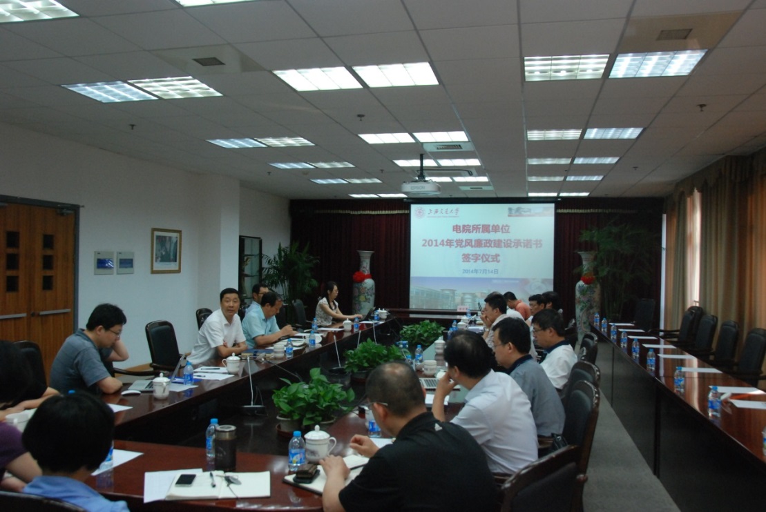 7月14日下午,新盛娱乐 召开所属单位党风廉政建设承诺书签字仪式。学院领导班子成员及各所属单位有关负责同志共20余人参加会议。党委副书记莫光成主持会议。