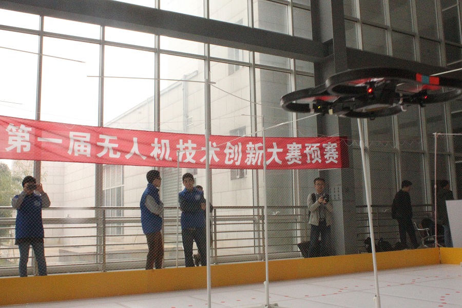 2014年4月19日上午9时,上海交通大学第一届无人机技术创新大赛预赛在微电子大楼大厅举行。16支队伍约50名学生到场参加预赛。此次比赛由“徐氏科技创新奖学基金”资助,预赛分为四个比赛项目,分别为快速目标跟随飞行、寻迹自主飞行、基于语音控制飞行以及基于惯导器件的动作识别飞行。