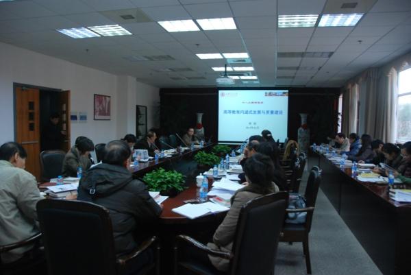 学院特邀学校学习贯彻十八大精神宣讲团成员、规划发展处处长、杨颉研究员为大家做“高等教育内涵式发展与质量建设”的主题报告。他首先回顾了历代党代会报告中关于教育地位的论述的变迁,教育的地位不断提升并一脉相承,十八大则突出了坚持教育优先发展的战略方针:当前我国的教育目标是基本实现教育现代化,高等教育方针即为推动高等教育内涵式发展,其核心工作是着力提高教育质量、培养学生创新精神,对应方法是必须把科学发展观贯穿到高等教育办学治校的各个方面,坚定不移地走以质量提升为核心的内涵式发展道路,注重在思路、重心、路径、管理方面做出实质转变,以实现从面上质量到核心质量的重要跃升。