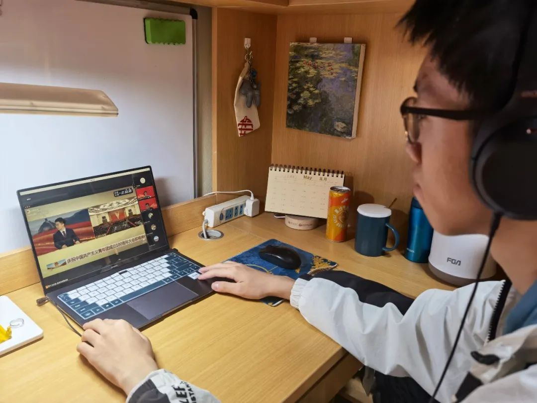 今天,我和团委学生骨干们一起,学习了习近平总书记在在庆祝中国共产主义青年团成立100周年大会上的讲话,我心潮澎湃,对新时代新青年历史使命的认识不断加深。同龄人朝气向上、踏实苦干的奋斗模样,提醒我时刻反思自身不足,积极进取。总书记带给青年朋友的谆谆教诲,帮我们指明前进的方向;寄予青年朋友的殷殷期望,激励着我们朝着时代复兴的目标大步走去。当下,疫情反复、武装冲突频发、孤立主义抬头、去全球化浪潮汹涌,这样的艰难时局里,我们更应当坚定理想信念,磨砺自身意志品质,为建设祖国贡献自己的一份力量。长路漫漫,重任在肩,我辈定接续奋斗,不负韶华,不负祖国与人民的寄托。