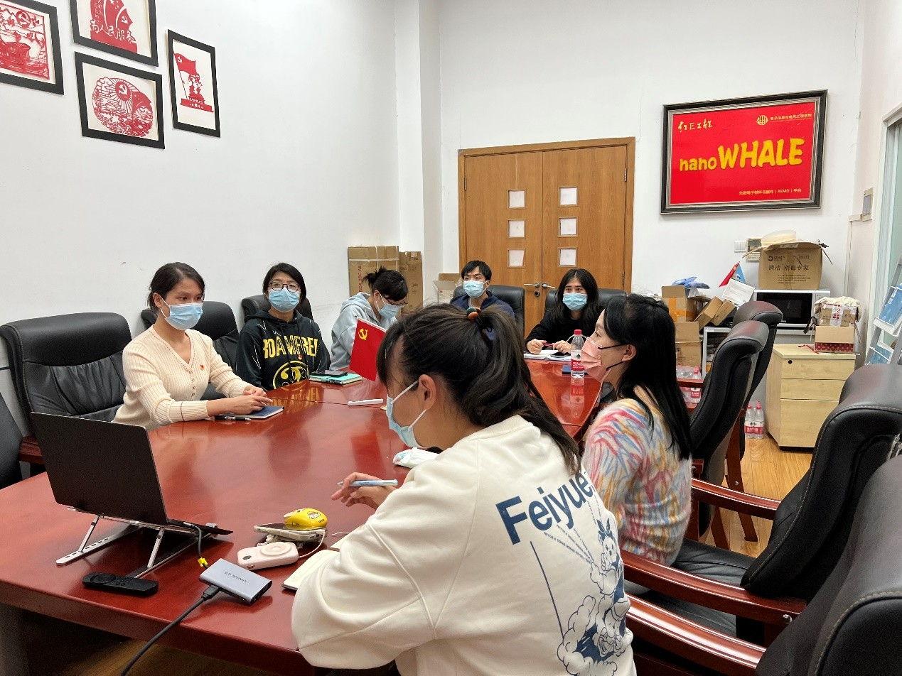 随后,支部党员结合二十大精神学习开展平台红E精神讨论,以期将党的二十大理论贯彻落实到工作全过程。支部书记刘毓闻首先发表对平台红E精神的解读,她认为AEMD平台作为支撑我校微纳加工领域发展的重要平台,本就以托举科技兴校强国为目标,红E精神就是在“把工作当成使命”的理念中诞生的,平台全体党员同志应秉承“凡是工作、必有目标,凡是目标、必有计划,凡是计划、必有执行”的标准不断自律自省,切实抓好支撑科研攻关、支撑学科发展、支撑大团队大项目的服务执行力,最大可能发挥服务效能。