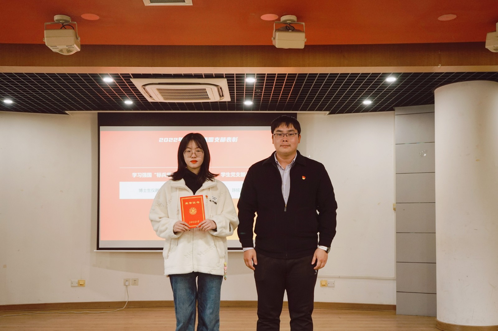 会上表彰了新盛娱乐 2022年度优秀硕博学生党支部书记和“学习强国”先进党支部。