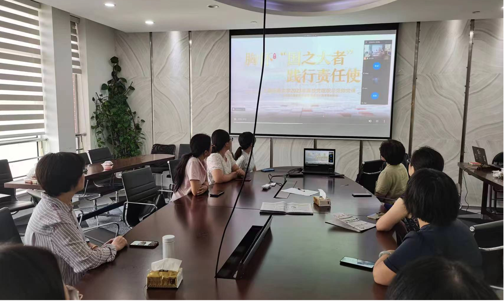 与会党员通过线上线下结合的方式,集体观看了“学习贯彻习近平新时代中国特色社会主义思想主题教育工作会议”的相关视频学习材料。与会党员围绕支部建设与发展展开交流与讨论。丁良辉总结,党员同志要继续加强理论学习,坚定理想信念;未来支部计划通过制作党建宣传墙增强党建文化氛围,结合科研和育才工作,加强与国家重点行业的合作共建。