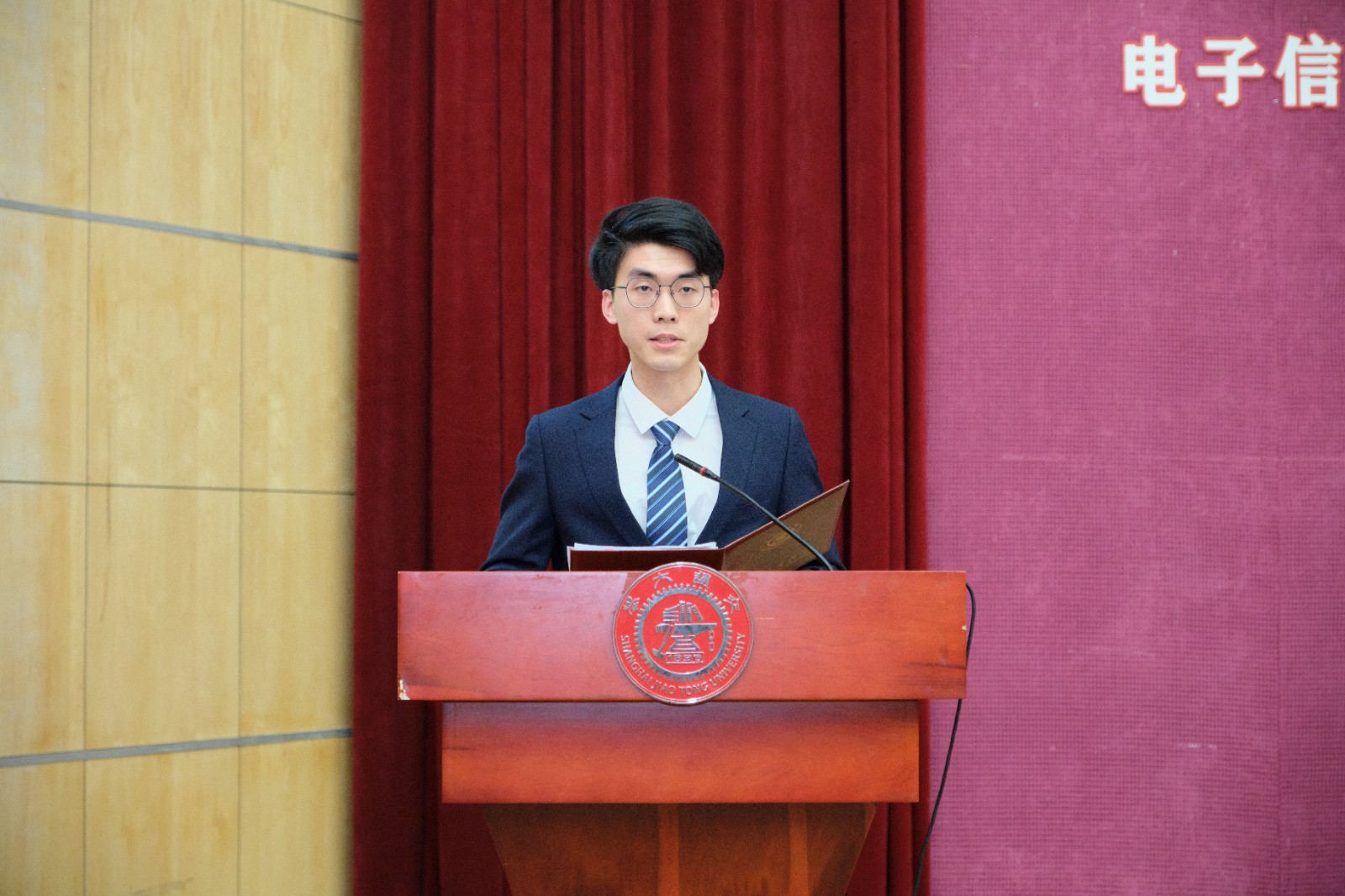 第十三届研究生会主席团成员王泽夫作《电子信息与电气工程学院第十四次研究生代表大会提案工作报告》,向大会汇报了教学科研、学院管理、学生事务、学生就业、学生活动等五个类别下同学们关注度较高的提案内容及相关回应情况。