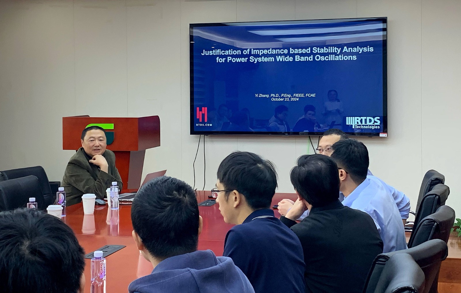 10月24日上午,上海交通大学电子信息与电气工程学院电气工程系杰出校友、加拿大工程院院士、IEEE Fellow、加拿大RTDS技术公司首席技术官、副总裁张益博士应邀回到母校,于闵行校区智能电网中心楼214会议室作题为“Justification of Impedance based Stability Analysis for Power System Wide Band Oscillations”的专题学术报告。本次活动由电气工程系副主任汪可友教授主持,张沛超副教授、王西田副教授、吕敬副教授、吴超助理教授、徐晋助理教授等中青年骨干教师参加,30余名相关领域的研究生现场聆听了学术报告。