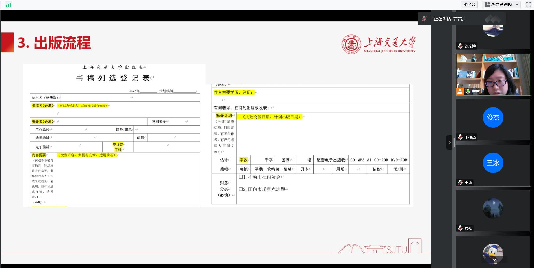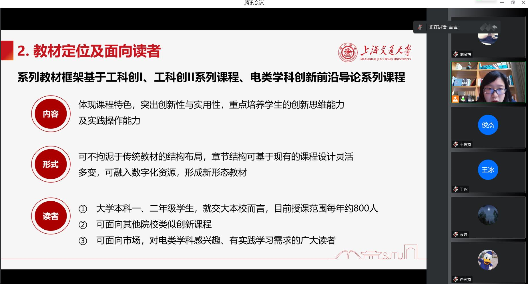 上海交通大学出版社刘玉喆老师介绍了出版社教材工作和教材出版基金申报工作,对接学院做好教材出版的支撑服务,助力学院打造校级“教材精品工程”。