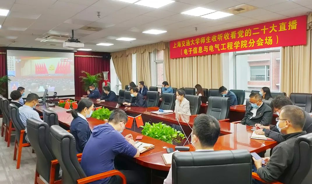 电子信息与电气工程学院党委组织全院师生收听收看二十大开幕式直播,苏跃增等领导班子成员、基层单位党政负责人、思政教师及教师代表在学院主会场观看直播。各基层党支部书记、基层单位教师分别在十一个分会场同步观看,学生党员通过线上方式观看盛会。会后师生党员立即展开热烈讨论,纷纷表达对盛会的期盼和喜悦之情。