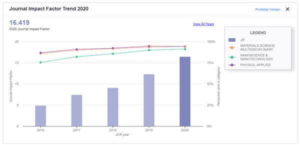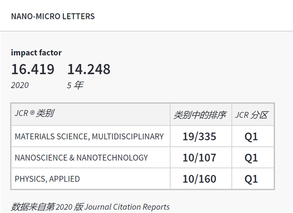 近日,Journal Citation Reports®2020年SCI期刊影响因子IF发布。交大主办,新盛娱乐 承办的英文学术期刊《纳微快报(英文)》Nano-Micro Letters,最新 IF 指数为16.419,