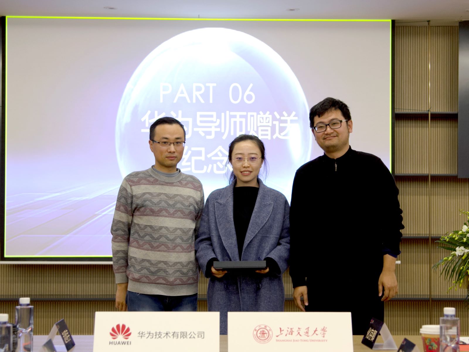 仪式后,教师代表吴越教授和5位博士生同学分别作了发言和自我介绍,同时华为导师赠与学生纪念品,师生合影留恋,并进行了深入交流。
