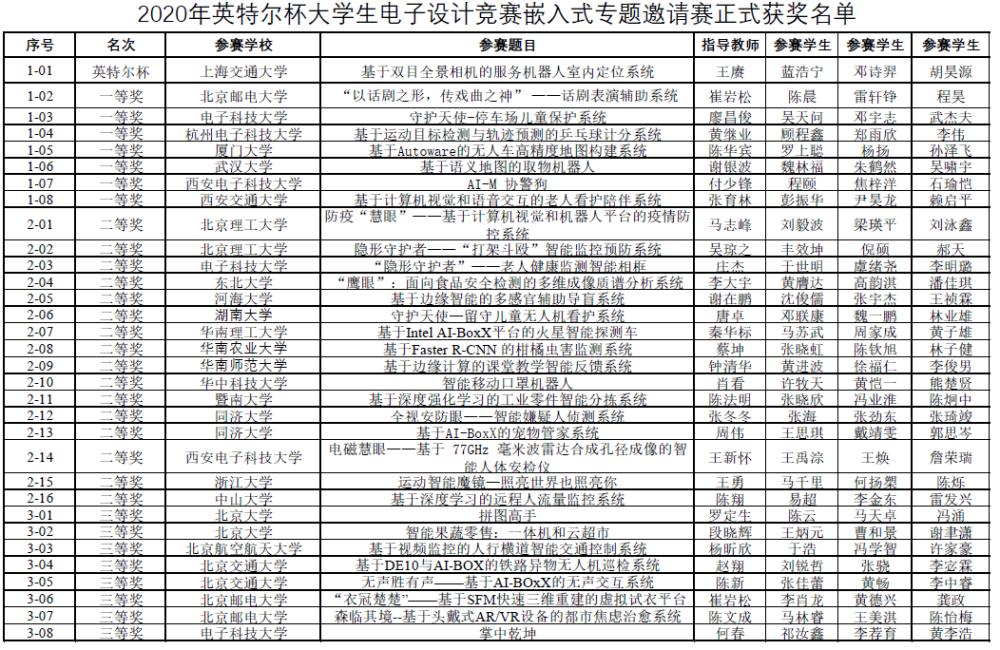 2020年英特尔杯嵌入式大赛历时半年,共吸引来自89所高校的143支队伍参赛。大赛主要围绕嵌入式产品设计和制作,旨在培育大学生的创新能力和团队合作意识,增强大学生的动手能力和工程实践能力。本次竞赛上海交通大学软件学院王赓老师指导的蓝浩宁、邓诗羿、胡昊源参赛队拔得头筹,获得本届竞赛最高奖-英特尔杯。