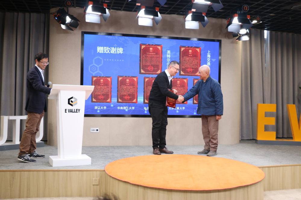 韩韬教授(中)代表上海交通大学受赠致谢牌