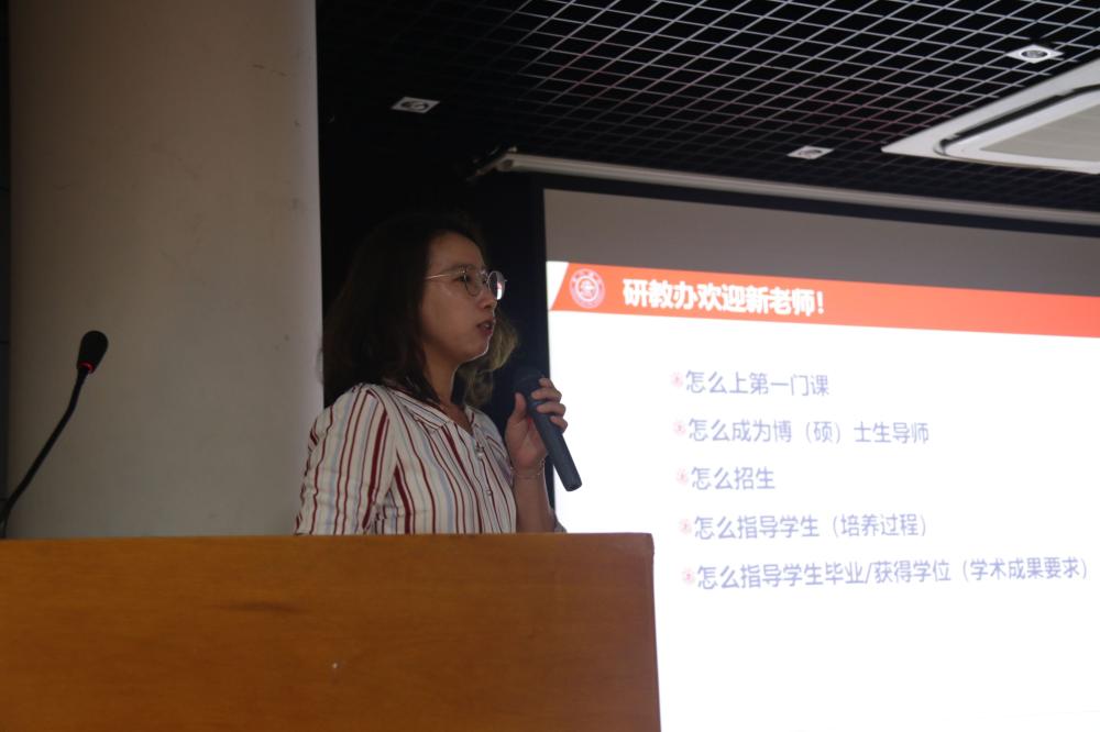随后,各机关办公室主任分别从教学、科研、人事、工会等方面对新进教职工们可能遇到的问题以及亟需掌握的重要信息进行解答及解析。