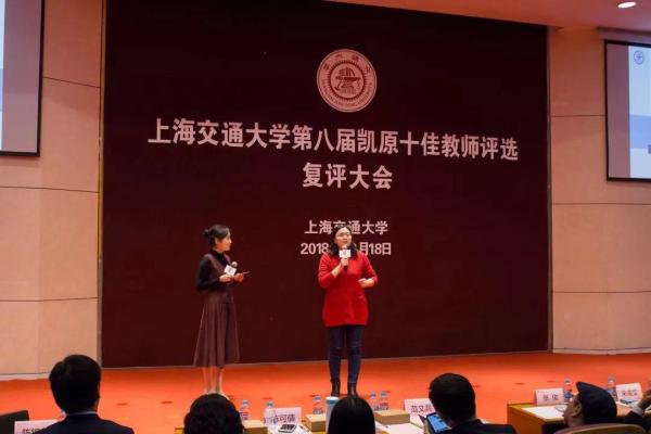 12月18日,上海交通大学第八届“凯原十佳”教师复评大会在闵行校区陈瑞球楼100号举行。评委由来自各院系近500名学生代表组成。经过现场公开课展示,我院高晓沨副教授脱颖而出,荣获上海交通大学第八届“凯原十佳”教师称号。