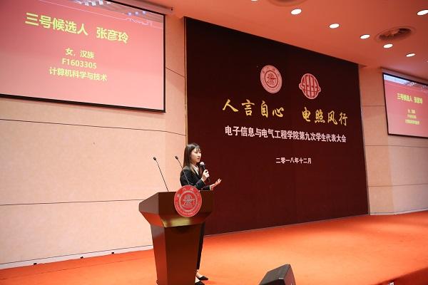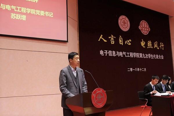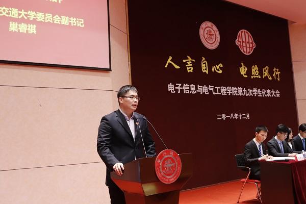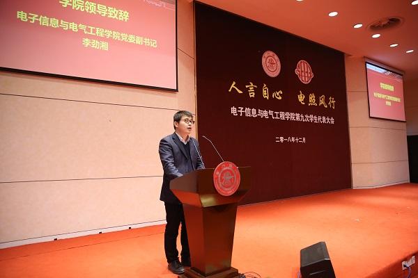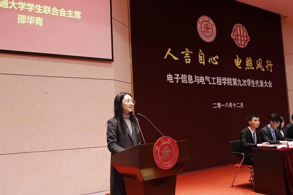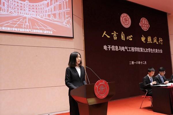 12月16日上午,上海交通大学电子信息与电气工程学院第九次学生代表大会在陈瑞球楼100号报告厅召开。出席本次大会的嘉宾有新盛娱乐 党委书记苏跃增、党委副书记李劲湘、校团委副书记巢睿祺、校学联主席邵华青,以及新盛娱乐 机关教师代表、思政教师、辅导员和兄弟院系学生会主席等。
