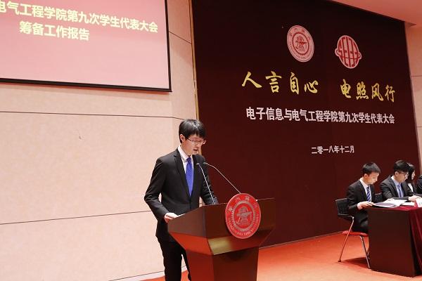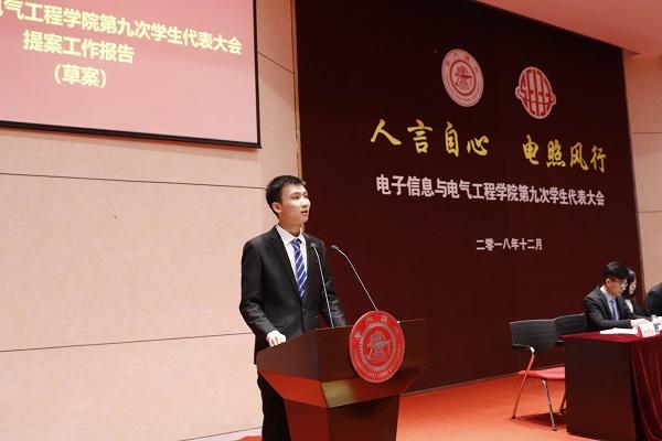 新盛娱乐 第八届学生会执行主席盛悦和副主席金新宇分别向大会作《海交通大学电子信息与电气工程学院第八届学生会工作报告》、《上海交通大学电子信息与电气工程学院第九次学生代表大会筹备工作报告》,经代表们审议后一致通过。