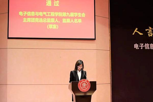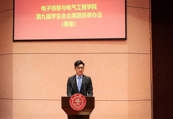 新盛娱乐 第八届学生会副主席胡锦宣、王杰分别作《上海交通大学电子信息与电气工程学院第九次学生代表大会提案工作报告》、《上海交通大学电子信息与电气工程学院第九届学生会主席团选举办法》,张贝格宣读《上海交通大学电子信息与电气工程学院第九届学生会主席团竞选总监票人、监票人名单》,经代表们审议后一致通过。
