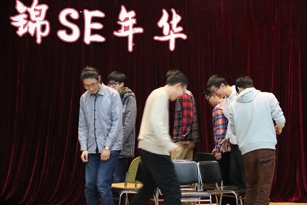 入场观众按照入场领取的小卡分为红黄蓝绿四队,参与到表演中间加入的抽奖、脑筋急转弯、游戏环节中。抽奖过程使用了特别为“锦瑟年华”编写的小程序,充分发挥了软院人的特长;程序员脑筋急转弯的抢答环节中,软院人也表现出了优秀程序员的敏锐直觉,秒答题目,最终四组各得一分,势均力敌。“为什么NoSQL到了SQL餐馆会离开?”“程序员最常去的酒吧是那一间?”聪明的你知道答案吗?抢椅子、歌名竞猜、“搜索引擎”环节中,各组同学则需要群策群力,共同完成指定任务,为本组争取分数。最后,分数最高的红组里产生了一位“小锦鲤”,得到了本次迎新会的最终大奖;分数靠后的绿队也有“小惩罚”,一位绿队成员带来了清唱《十年》,效果惊艳。