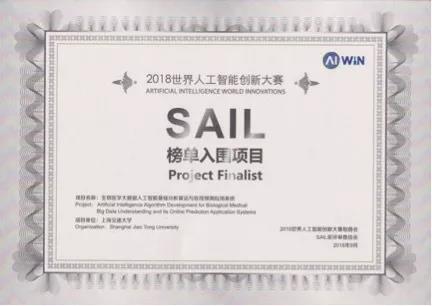 9月17日,由国家发展改革委、科技部、工业和信息化部、国家网信办、中国科学院、中国工程院和上海市人民政府共同主办的2018世界人工智能大会在上海开幕,也揭晓了作为 2018 世界人工智能创新大赛AIWIN最高荣誉的SAIL 奖最终入围的13个项目榜单,上海交通大学推荐项目“生物医学大数据人工智能基础分析算法与在线预测应用系统”成功入围,是国内高校唯一以第一完成单位入围的项目。