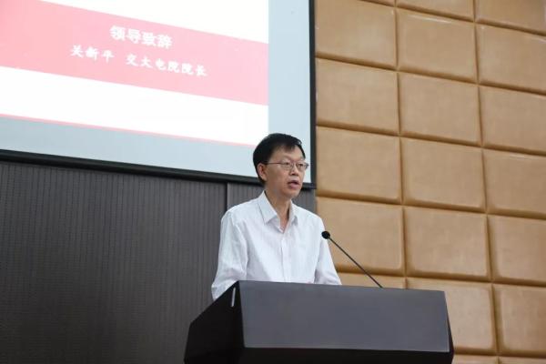 关新平致辞,他希望同学们通过勤奋学习,拓展与工程管理有关的技术视野、人脉视野,能够成为国家信息产业及其关联性产业中,既懂技术、又能管理,既能研究、又能实战,既看脚下、又谋长远的复合型骨干人才。