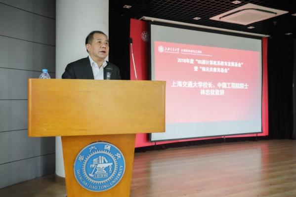 林忠钦校长代表学校致辞。他首先代表学校向返校的计算机系85届校友表示热烈的欢迎。他表示,基金成立到如今已走过了三个年头,三年中,计算机系85届校友和杨元庆校友始终关心着学弟学妹的成长与发展,使基金能够在最大范围内助力计算机系老师和学生们的工作与学习。这份关怀与帮助,体现出校友们对母校的拳拳之心、眷眷之情,饱含着他们对于学弟学妹们的深深情谊和浓浓关切。同时,也充分体现出交大人“饮水思源,爱国荣校”的精神品格,体现出交大文化与精神的传承。他代表学校向鼎力支持学校发展、人才建设和学生培养的校友们致以衷心感谢。