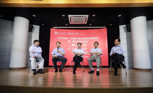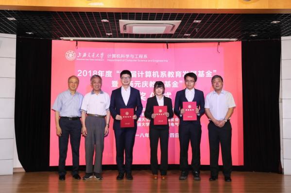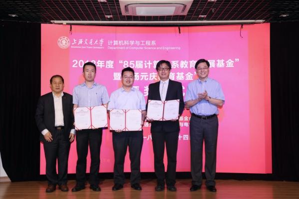 6月24日,2018年度“85届计算机系教育发展基金”暨“杨元庆教育基金”颁奖仪式在电信3号楼200号报告厅隆重举行。联想集团董事长兼CEO杨元庆学长、中国联通集团 CEO兼副董事长陆益民学长、加拿大工程院院士凌晓峰学长、ODE咨询公司中国区总经理钱蓬学长、卢建军学长、孙瑞铭学长等计算机系85届校友回到母校参加颁奖仪式。上海交通大学校长、中国工程院院士林忠钦、上海交通大学副校长张安胜、上海交通大学教育发展基金会副秘书长殷洁、上海交通大学电子信息与电气工程学院党委书记苏跃增、上海交通大学电子信息与电气工程学院副院长邰能灵、副院长朱燕民、计算机系主任过敏意、计算机系党总支书记张丽清、原交大党委副书记计算机85届辅导员潘永华老师、计算机85届班主任侯文永老师,以及计算机系部分师生代表出席颁奖仪式。仪式由基金会秘书长卢建军主持。