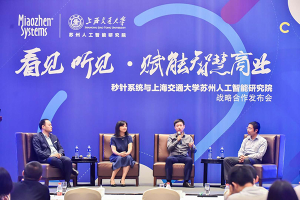 2018 年 5 月 16 日,上海交通大学苏州人工智能研究院与秒针系统“看见听见·智慧商业”战略合作发布会在苏州召开。苏州工业园区管委会副主任、独墅湖科教创新区管委会书记丁立新,国家新一代人工智能产业技术创新战略联盟秘书长张伟民,上海交通大学苏州人工智能研究院院长王延峰,秒针系统创始人兼 CEO 吴明辉,上海交通大学未来媒体网络协同创新中心张娅教授,上海交通大学苏州人工智能研究院执行院长、苏州思必驰公司首席科学家俞凯出席了此次发布会。