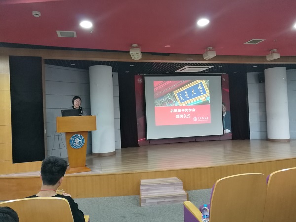 许晨佳作为代表宣读了启德奖学金的获奖同学,各位领导嘉宾为获奖的20位同学分别颁奖,表达了他们的殷切期望,并共同合影留念。