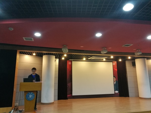 邱杰霖作为获奖同学代表发言。他表示很荣幸能够获奖,总结了自己一路走来的经历,自己一定不辜负学校、学院、启德教育集团的期望,继续努力,成为一名优秀的人才。