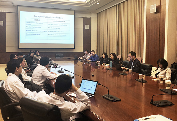李飞飞教授团队首先拜访了未来媒体网络协同创新中心,电子信息与电气工程学院副院长王延峰教授介绍了中心的情况,双方在数据采集、存储方面进行了方案讨论。随后李飞飞教授团队赴交大医学院附属瑞金医院进行了学术交流,瑞金医院副院长宁光院士出席了会议,双方就人工智能在各个医疗科室方向上的拓展进行了深入的讨论,对未来的合作进行了规划。
