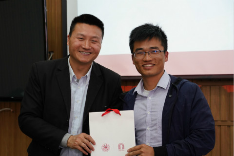 即将硕士毕业的退伍学生程益生分享了自己学习和工作的体会,为在读同学提出很多宝贵的人生建议,同学们纷纷表示受益匪浅。季自军代表学院向他赠送了毕业纪念礼物。