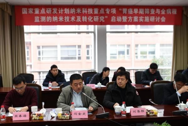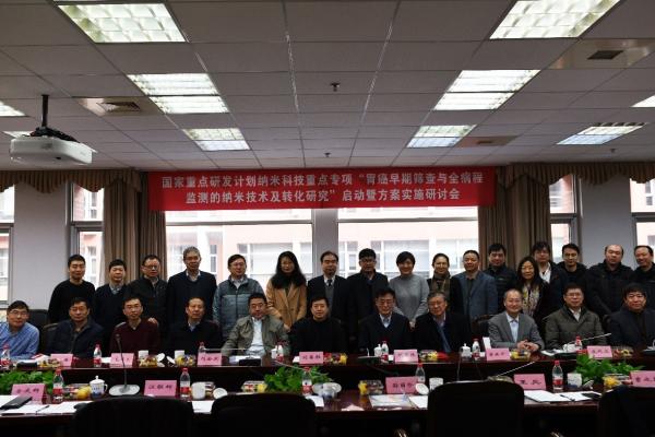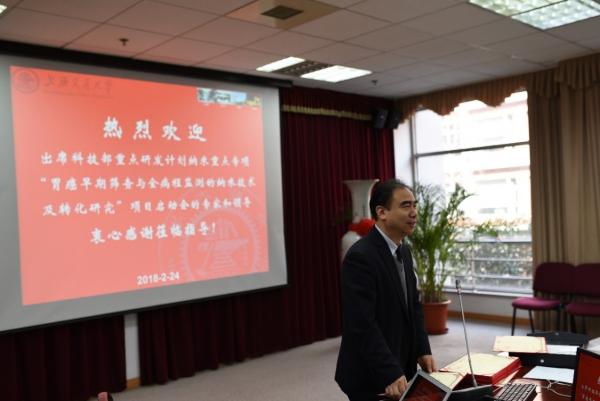 2018年2月24日,国家重点研发计划纳米科技重点专项“胃癌早期筛查与全病程监测的纳米技术及转化研究”项目启动及方案实施研讨会在上海交通大学电信学院3号楼208会议室召开。科技部项目管理中心闫金定处长,上海市科委基础处王兵、上海交通大学科研院孙丽珍副院长,电信学院院长毛军发院士,项目专家组专家刘昌胜院士、庞代文教授、申有青教授、顾忠伟教授、何丹农教授、樊春海教授、赵建龙教授、李亚平教授、曹成喜教授、马俊院长和马俐君主任,项目负责人崔大祥教授、倪健教授、金庆辉教授、汪联辉教授、何农跃教授、王雪梅教授及钱卫平教授等项目团队骨干成员,以及交大仪器系部分老师、学生出席了启动会。