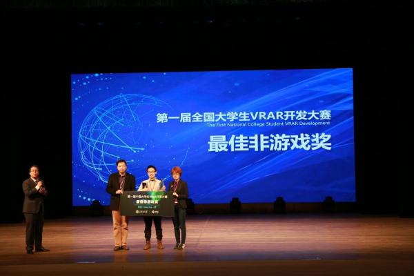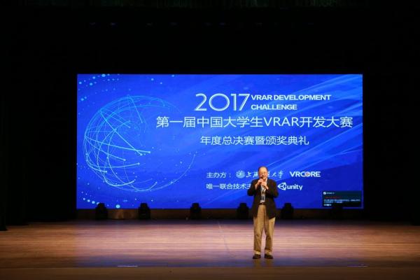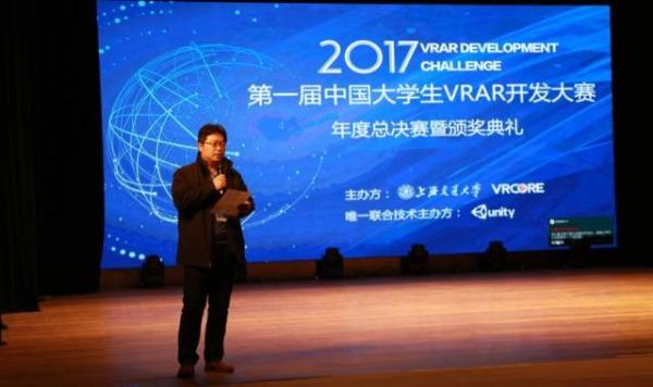 由上海交通大学电子信息与电气学院、VRCORE联合举办,徐氏科技创新奖学基金支持,由上海交通大学电子信息与电气工程学院、上海交通大学计算机科学与工程系VR教育中心、上海交大科技园共同承办的首届中国大学生VRAR开发大赛于2017年12月25日下午在上海交通大学闵行校区举行总决赛暨颁奖典礼。本次赛事针对大学生开展,将全国划分为四大赛区,联合百所高校,覆盖30余座城市。经过半年的招募共有超过百支队伍进行参赛,经过严格的选拔,选出18个入围作品进行奖项角逐。上海交通大学电子信息与电气工程学院副院长薛广涛教授,计算机科学与工程系党委书记张丽清教授,媒设学院,创业学院等院系领导亲临现场,来自华东理工大学,上海大学等兄弟院校等20多位领导专家也来观摩学习。