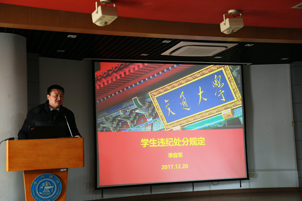 12月20日中午,新盛娱乐 在3-100报告厅召开2017年秋季学期学风建设大会。院党委书记苏跃增、党委副书记李劲湘、本科生教务办主任高怡祯、学生综合事务办主任季自军,全体思政教师、本科生班主任、研究生一年级班主任参加会议。会议由曾维娜主持。