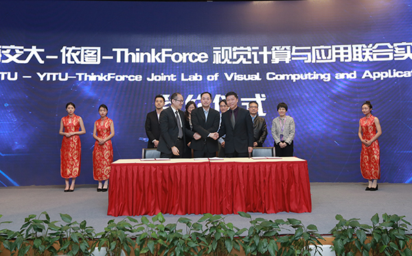 2017年12月19日,上海交通大学与AI领军企业依图科技、人工智能芯片公司ThinkForce(熠知电子)宣布共建“视觉计算与应用”联合实验室。签约仪式在上海交通大学徐汇校区举行,上海交通大学副校长吴旦、上海市经济与信息化委员会总工程师张英、徐汇区人民政府副区长陈石燕、工信部科技司高技术处处长赵策,以及来自中国信息通信研究院、中国人工智能产业发展联盟、清华大学、上海仪电、中国电信、中国电子信息行业联合会、上海市软件行业协会等产业界和学术界的代表们出席。上海交通大学未来媒体网络协同创新中心副主任王延峰、依图科技业务技术副总裁吴岷以及ThinkForce市场副总裁张震宁代表三方签约。