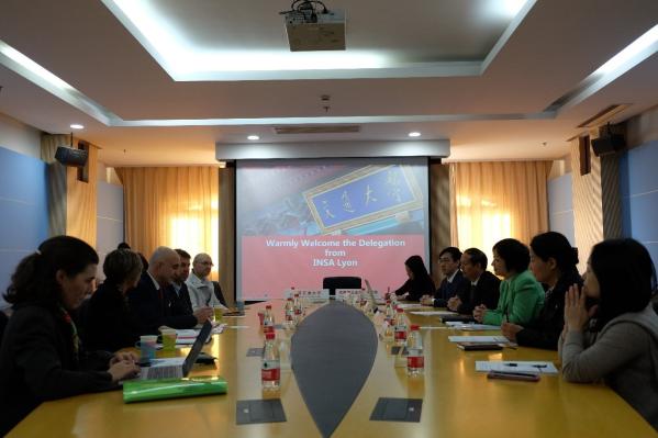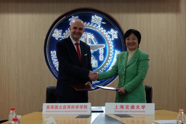 2017年12月5日,上海交通大学副校长徐学敏在闵行校区会见了法国里昂国立应用科学学院(INSA Lyon)校长Eric MAURINCOMME一行。出席接待的还有新盛娱乐 院长毛军发及国际合作与交流处副处长李萍等。徐学敏代表上海交大与INSA Lyon校长共同续签了两校双硕士合作协议。