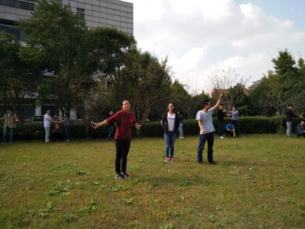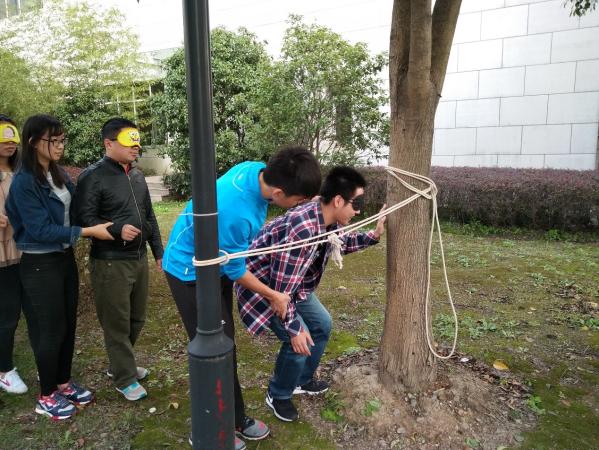 下午,培训活动在“松鼠与大树”环节中开场。在紧张又刺激的游戏中,同学们的注意力高度集中,反应迅速动作灵敏。大家在跑动中调动自身的积极性、唤醒活力也与更多的同学建立起了友谊。进入“信任盲行”环节,同学们两两一组,帮助队友在黑暗中完成一段未知又艰险的旅程。游戏中,同学们努力保护各自的同伴,最终与自己的搭档建立起深深的默契与信任。