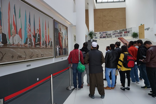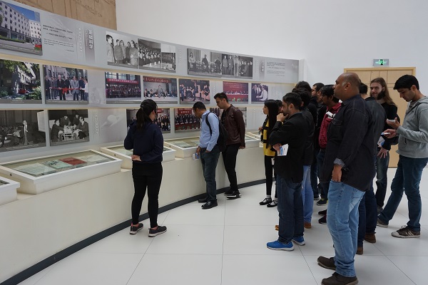 在传道展区,讲解员向留学生介绍了李政道先生在推动我国自然科学基础研究的发展,促进基础学科建设和中国高能物理发展,发现、培养优秀科技人才等方面取得的巨大成绩。留学生们对李政道先生至今依然关心着物理学科的发展与祖国的科教事业表示了深深地赞叹。