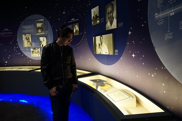 在悟道展区,留学生在讲解员的带领下,对李政道先生的成长经历有了初步的认识。李政道先生的成才之路传奇而曲折,离不开良好的家庭教育与名师指点,更是与他自己的勤勉好学密不可分,留学生更是对李政道先生的感恩之情和报国之心充满了敬佩。