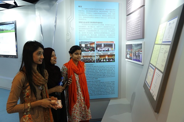 接着,留学生走进了科研成果展区,通过介绍新盛娱乐 学子在ACM比赛中取得的优异成绩,以及学院与国内外一流企业联合建立的实验室,充分体现了新盛娱乐 瞄准国际科技前沿,勇攀科研高峰的目标,让留学生对于新盛娱乐 的科研实力赞叹不已。
