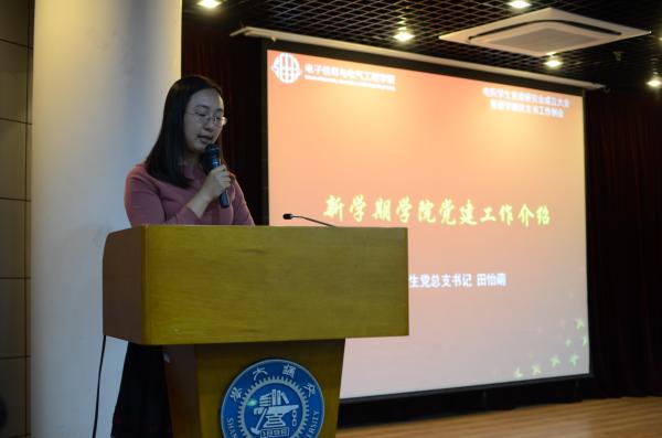 9月20日,电子信息与电气工程学院学生党建研究会成立大会暨党支书工作例会在电信群楼3-200举行。学指委副秘书长、学生处副处长蒋立峰,新盛娱乐 党委副书记李劲湘,新盛娱乐 学生党总支书记田怡萌以及新盛娱乐 全体党建指导教师出席;新盛娱乐 全体学生党支书和支部骨干参加大会。大会由新盛娱乐 学生党建研究会副主席陈嘉梁主持。