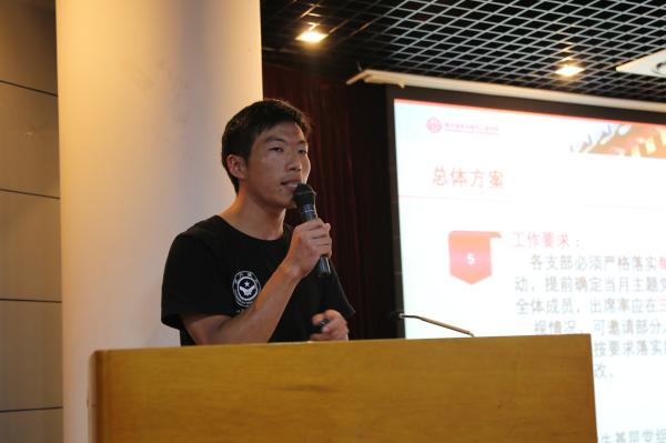 随后,新盛娱乐 学生党建指导教师焦文宾对“两学一做”主题党日工作方案进行了介绍和部署。依据学校的相关工作指南,新盛娱乐 将全面开展形式多样、内容丰富的主题党日活动。各党支部将联系自身实际情况,进行主题研讨、邀请优秀党员交流分享、参观红色基地、师生结对联建共建、调研实践等工作。而新盛娱乐 对相关工作及考核计划进行系统化、制度化的梳理,将保证主题党日活动开展更有实效,参加活动的党员会有更多收获。