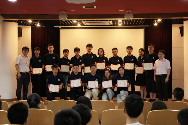 在新盛娱乐 全体学生党支书和支部骨干的见证下,蒋立峰与李劲湘共同为新盛娱乐 学生党建研究会揭牌,并为所有骨干成员颁发了聘书。