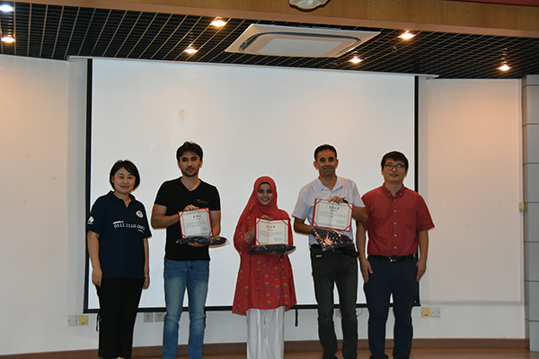 中场举行了2017年新盛娱乐 留学生一带一路征文比赛的颁奖仪式,李劲湘为一、二等奖进行颁奖,杨旭波为三等奖颁奖。